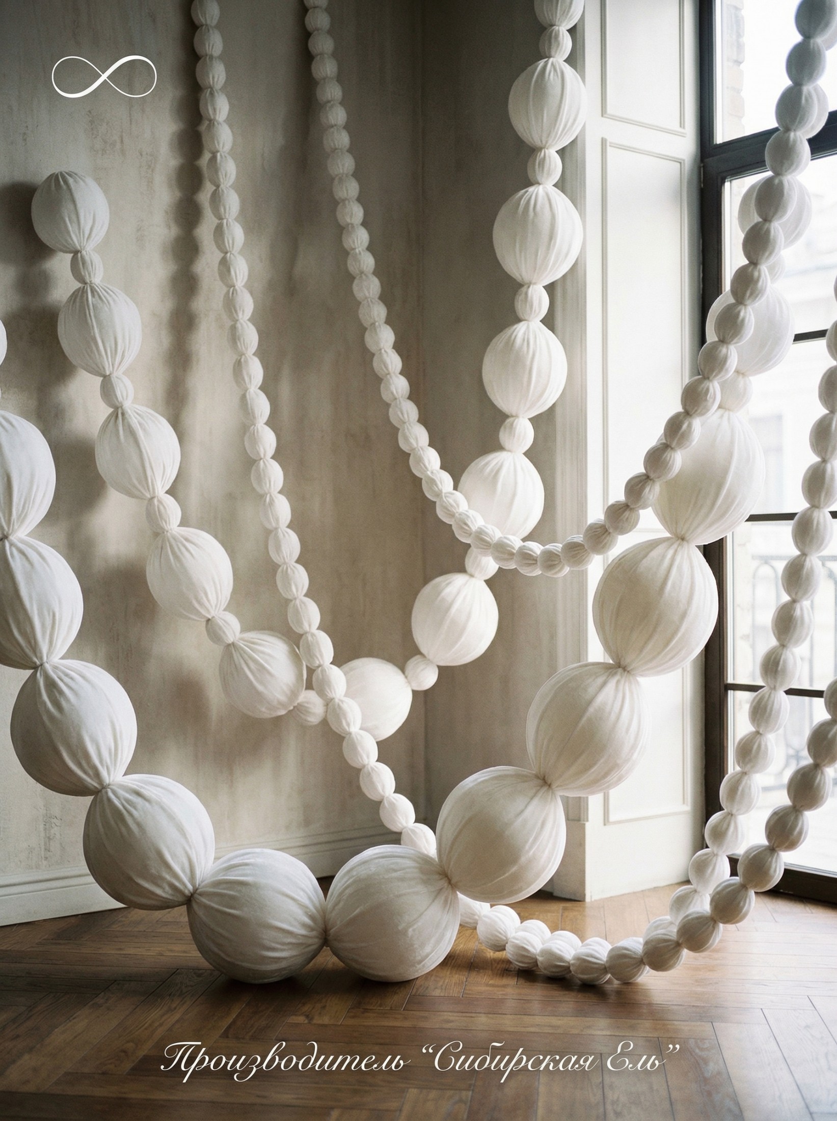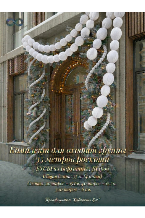 Бархатные бусы из шаров Белого оттенка — готовое решение для оформления фасада или входной группы. Цвет Белый Бархат когда важно получить насыщенный объём, чистый цвет и премиальное восприятие.