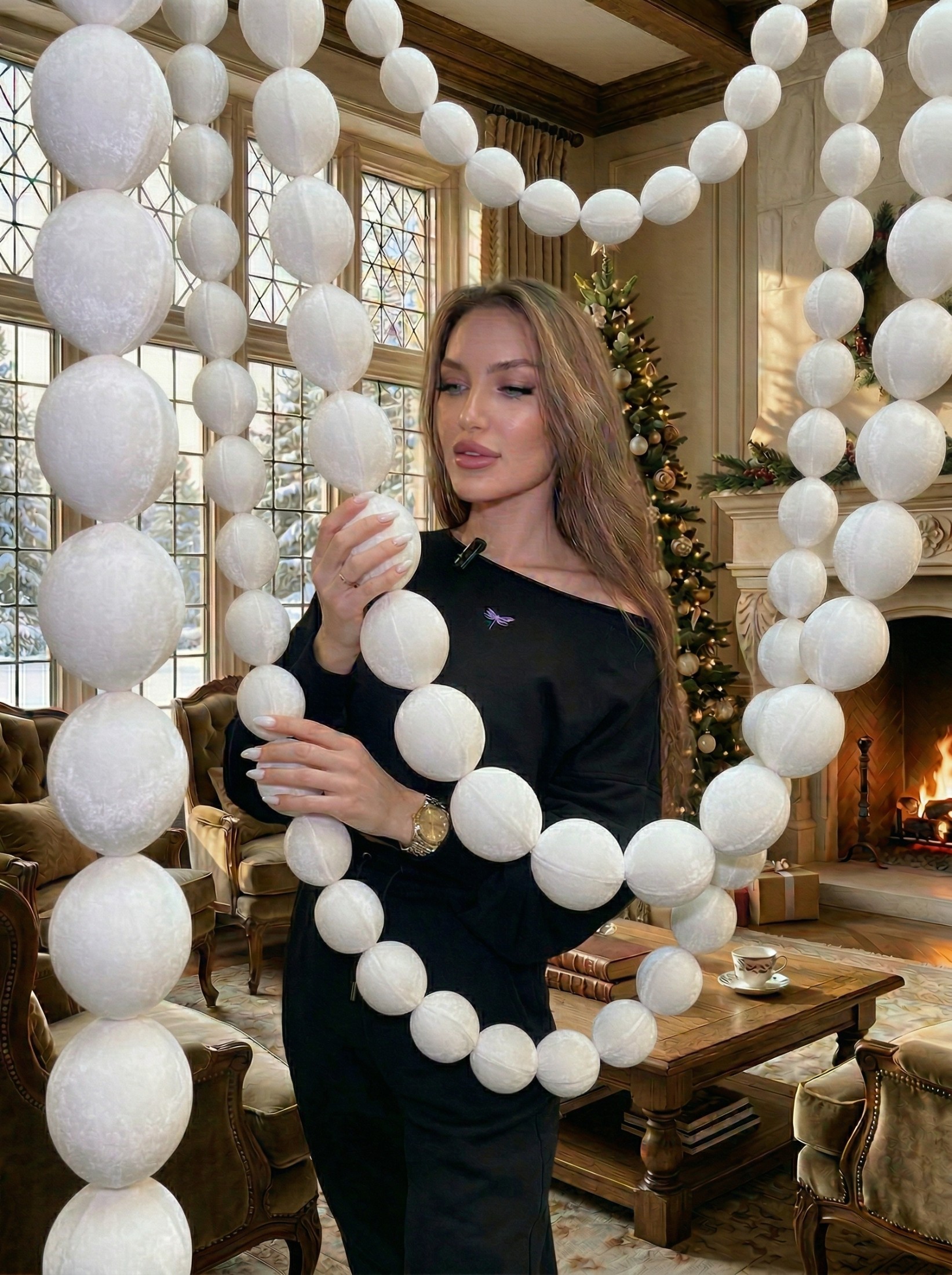 новогодний декор, украшения на елку, украшение для елки, елочные бусы, бусы из шаров, белые шары на елку, белый декор, бархатные бусы, велюровые шары, оформление елки, декор для дома