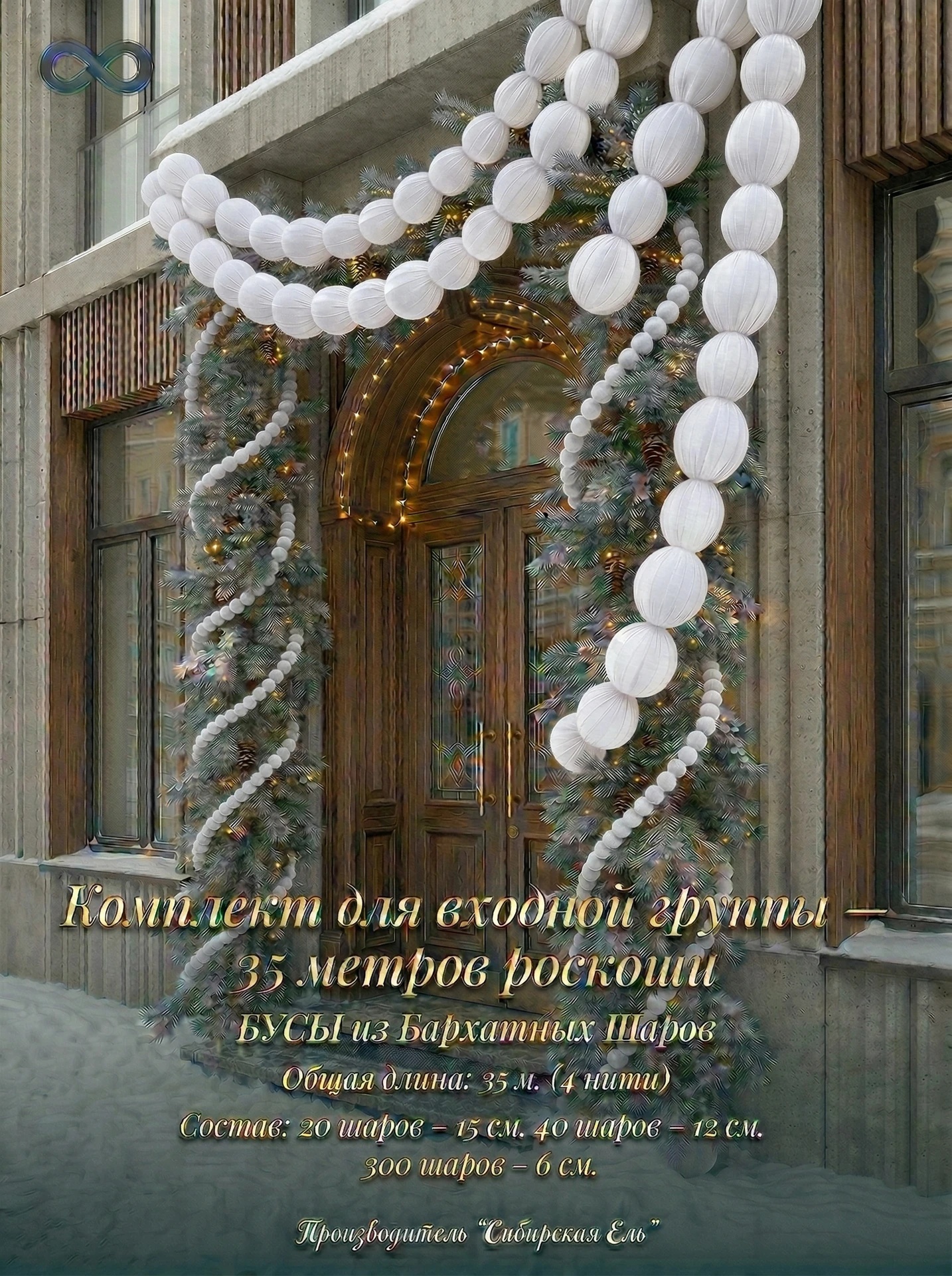 Бархатные бусы из шаров Белого оттенка — готовое решение для оформления фасада или входной группы. Цвет Белый Бархат когда важно получить насыщенный объём, чистый цвет и премиальное восприятие.