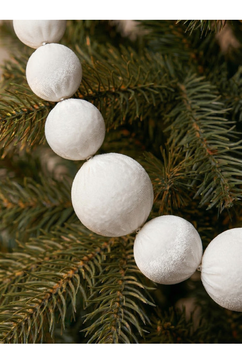 бусы на елку из шаров, гирлянда из шаров на елку, белые шары на елку, белый декор на елку, бархатные шары на елку, велюровые шары белые, матовые шары на елку, набор украшений на елку белый, скандинавский новогодний декор, минимализм новогодний декор