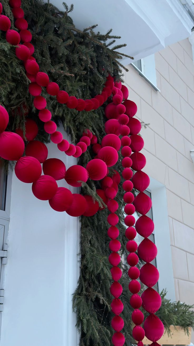 Бархатные бусы из шаров Красного оттенка — готовое решение для оформления фасада или входной группы. Цвет Красный Бархат когда важно получить насыщенный объём, чистый цвет и премиальное восприятие.